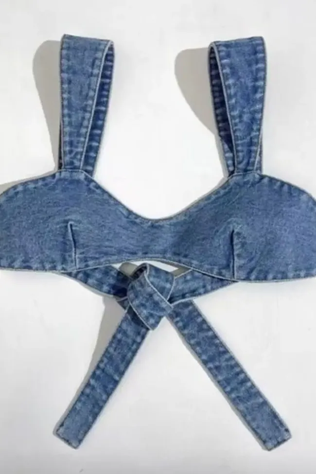 Back Knot Denim Bralette Top