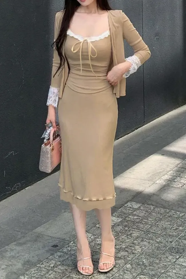 Beige Lace Overlay Co-Ord Set