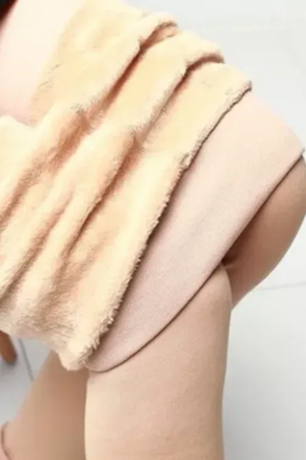 Beige Solid Fleece Stockings