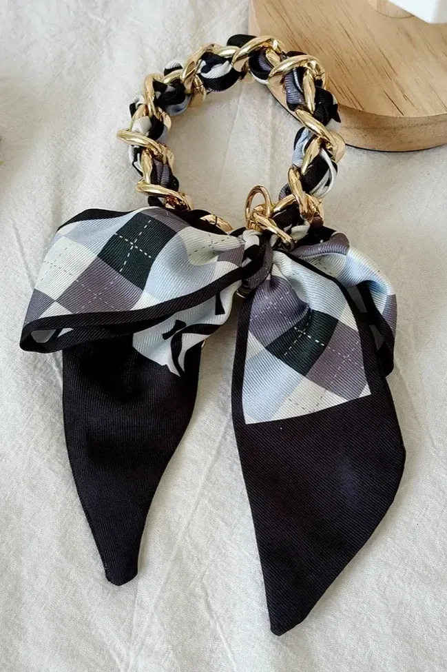 Black Argyle Bow Bag Charm