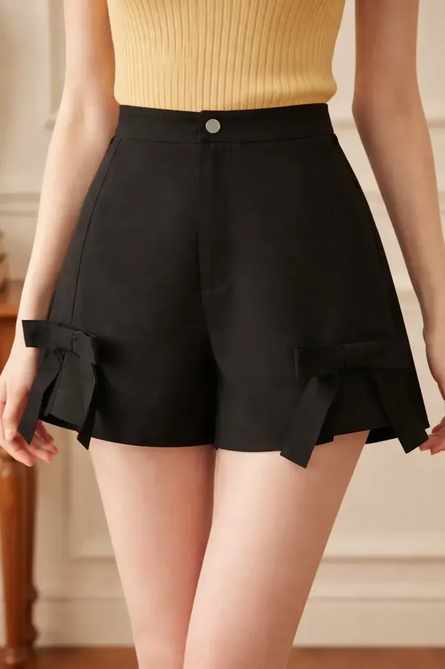 Black Bow High Rise Shorts
