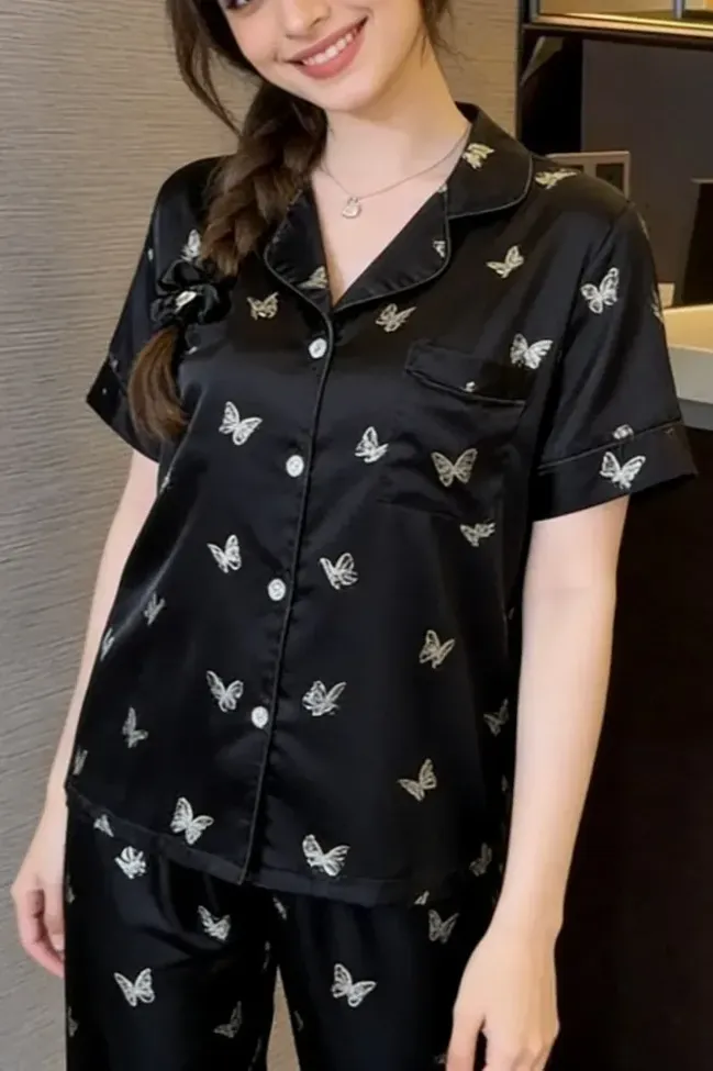 Black Butterfly Print Co-Ord Set