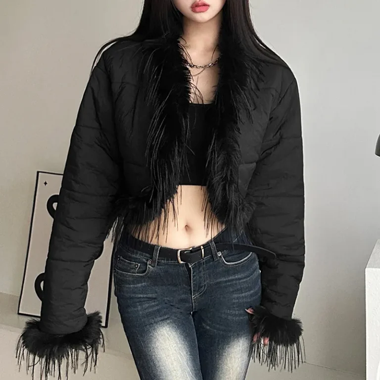 Black Fur Rimmed Puffer Winter Jacket