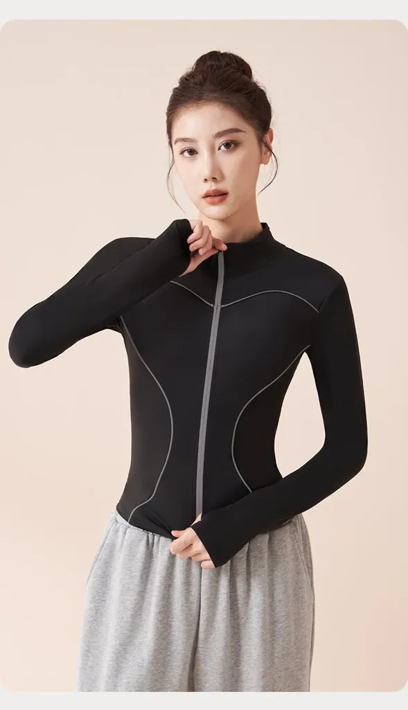 Black High-Neck Fitted Sports Jacket