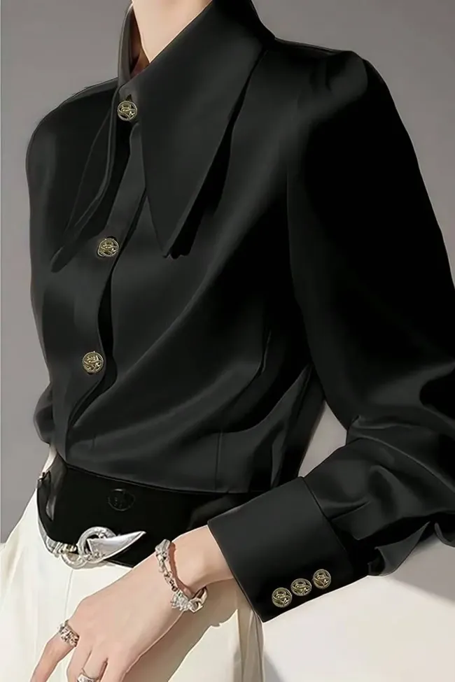 Black Solid Buttoned Collar Shirt