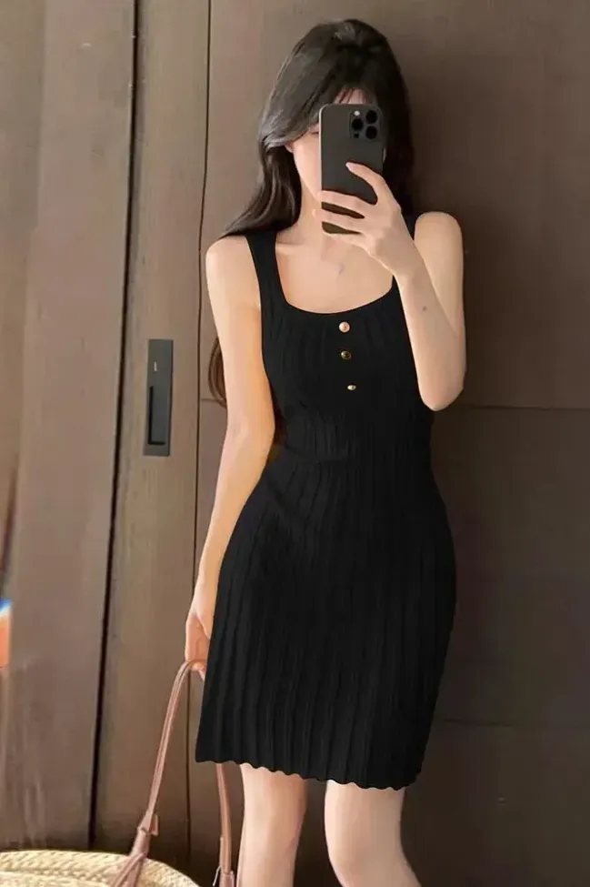 Black Solid Scoop Neck Mini Dress