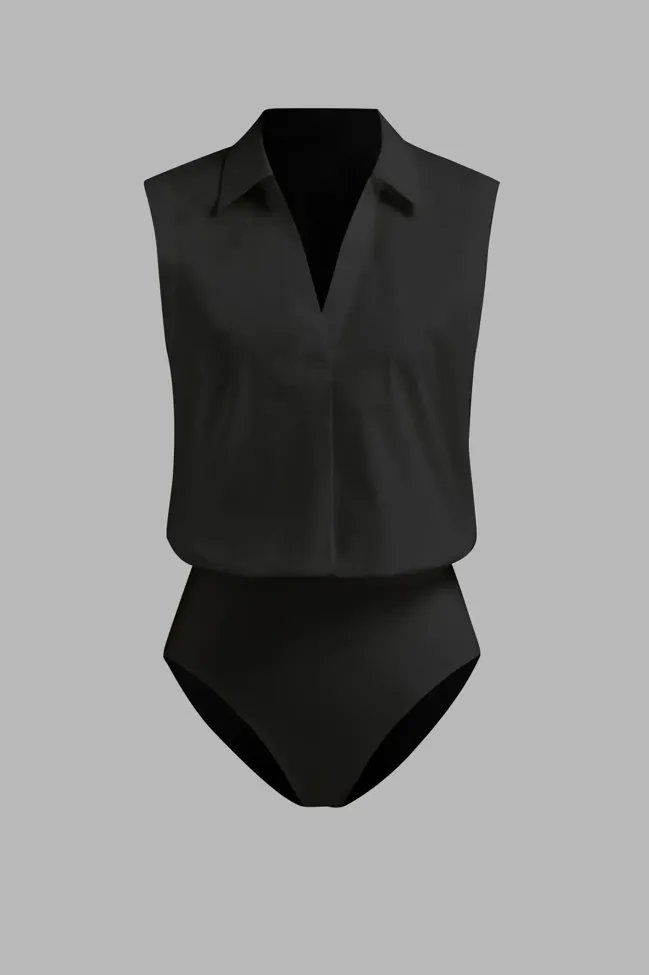 Black Solid V-Neck Bodysuit