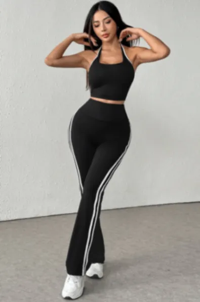 Black Stripe Halter Neck Coord Set