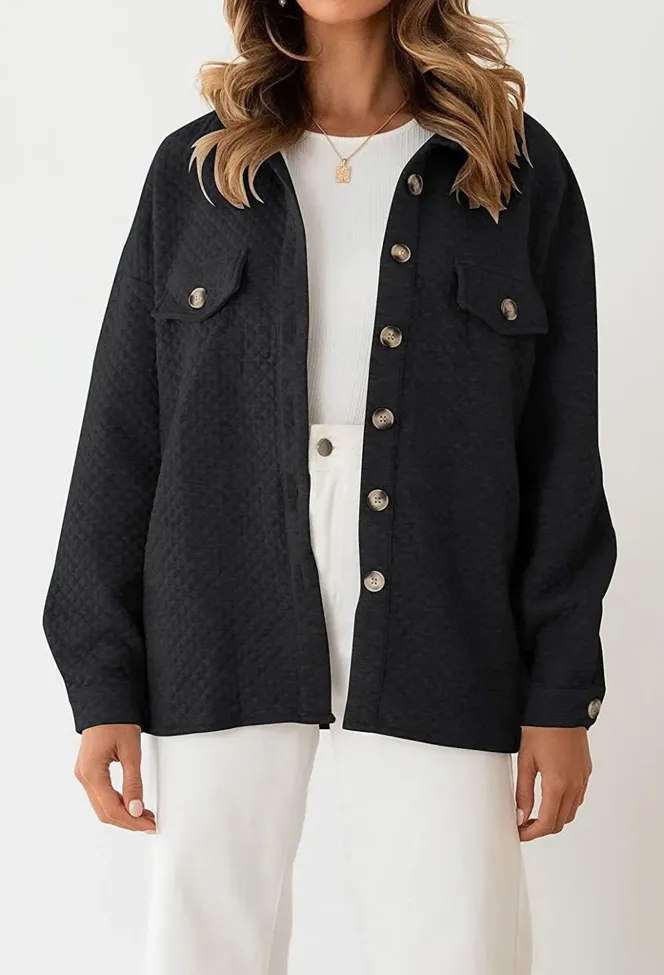 Black Textured Spread Neck Shacket