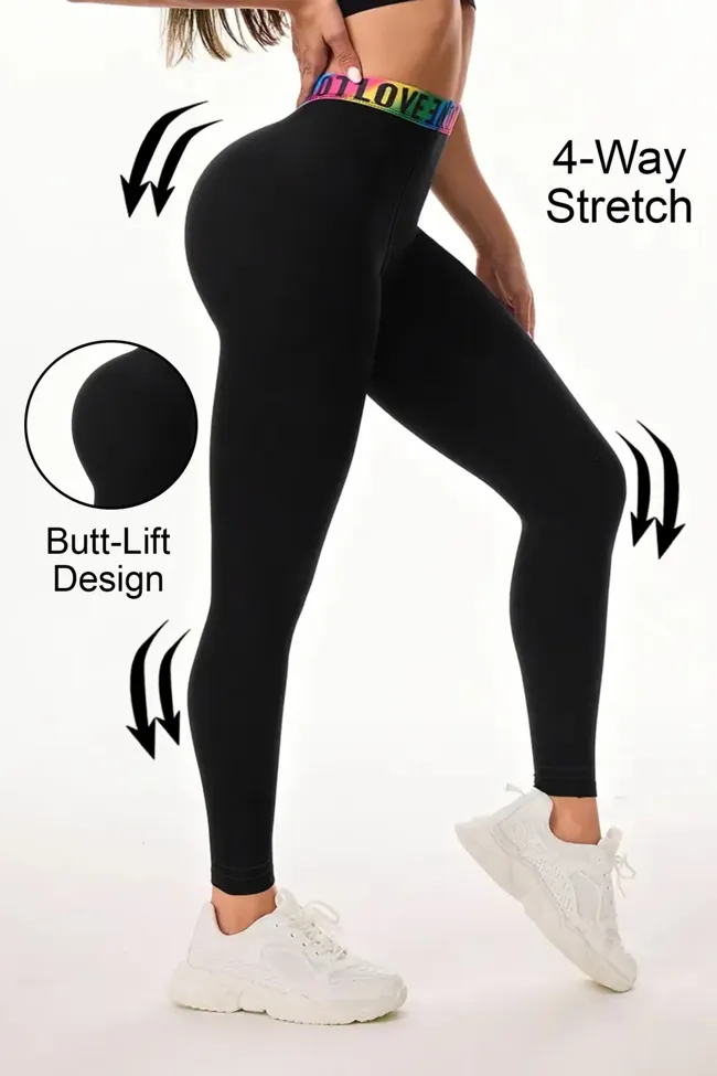 Black Typography High Rise Leggings