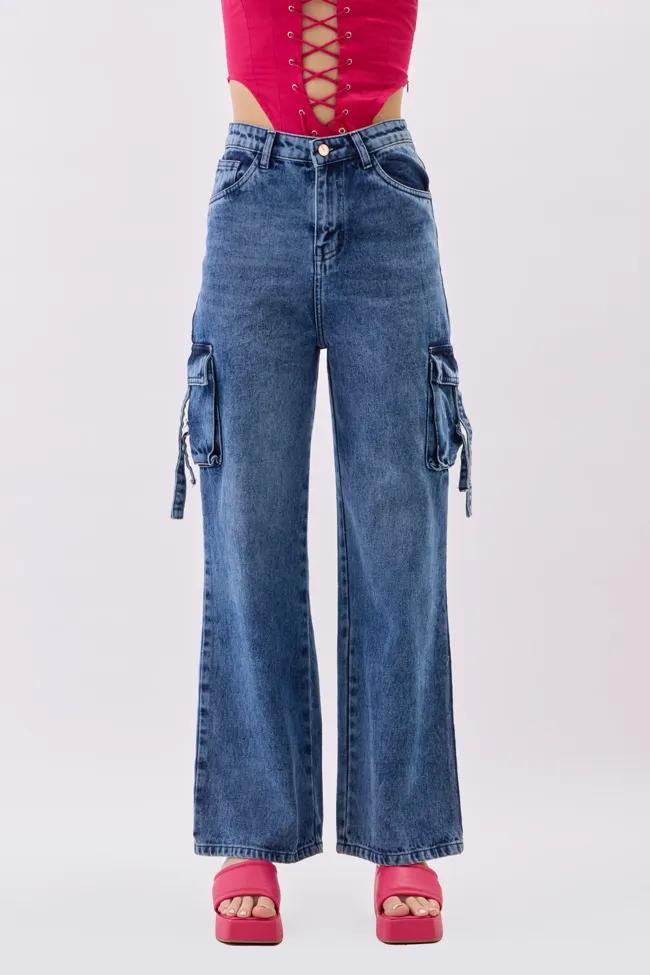 Blue High Waist Cargo Jeans