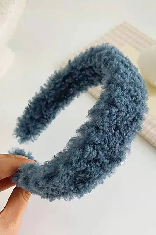 Blue Solid Fur Hair Band