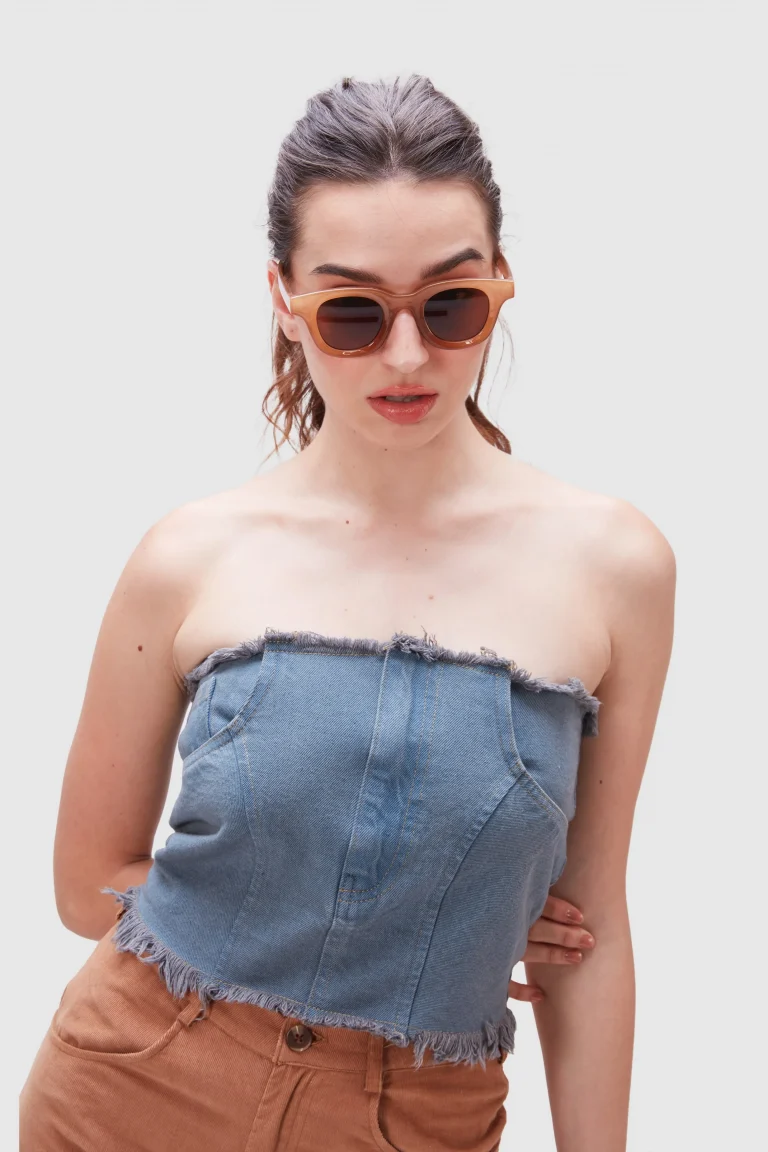 Blue Strapless Denim Corset Top
