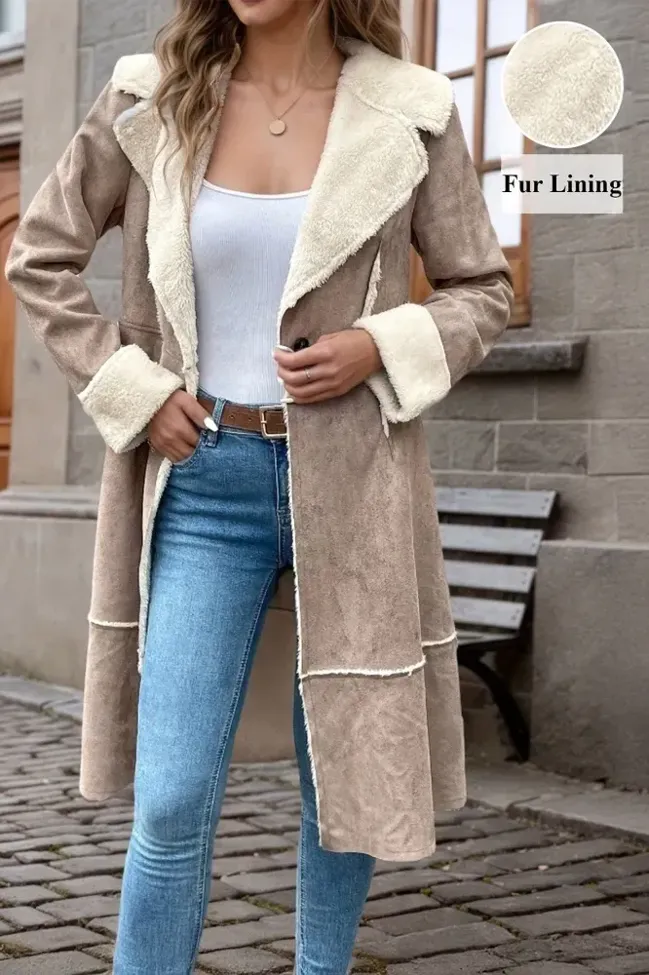 Fleece Lined Lapel Collar Overcoat