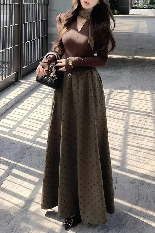 Brown Polka Dot Maxi Co-Ord Set