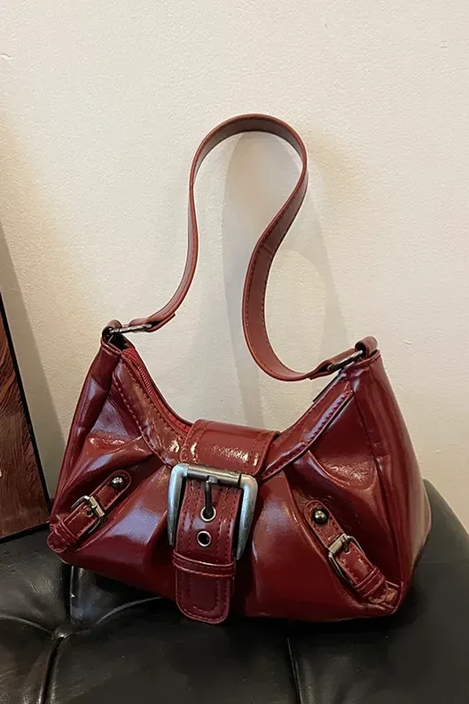 Burgundy Belted Pu Satchel Bag