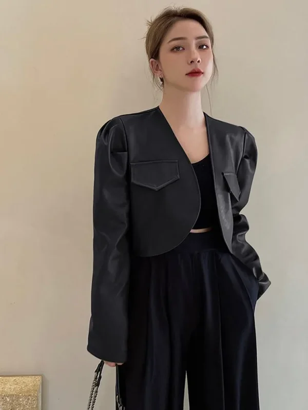 Casual Cropped Leather Casual Jacket