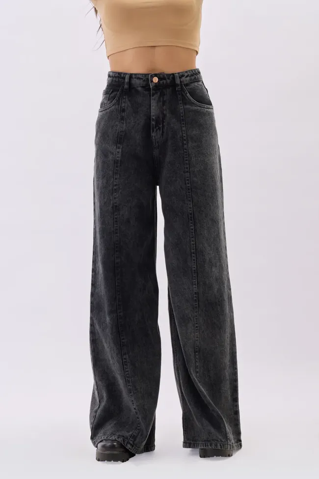 Charcoal Grey Solid Baggy Jeans