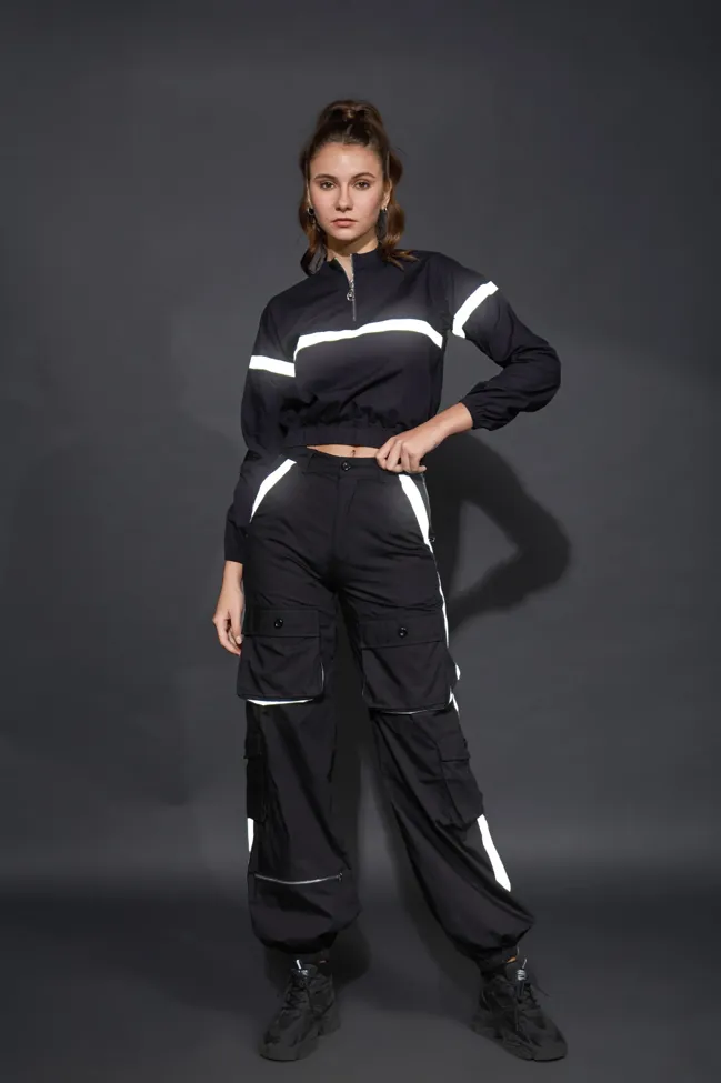 Reflective Zipper Top And Parachute Trousers Co Ord Set