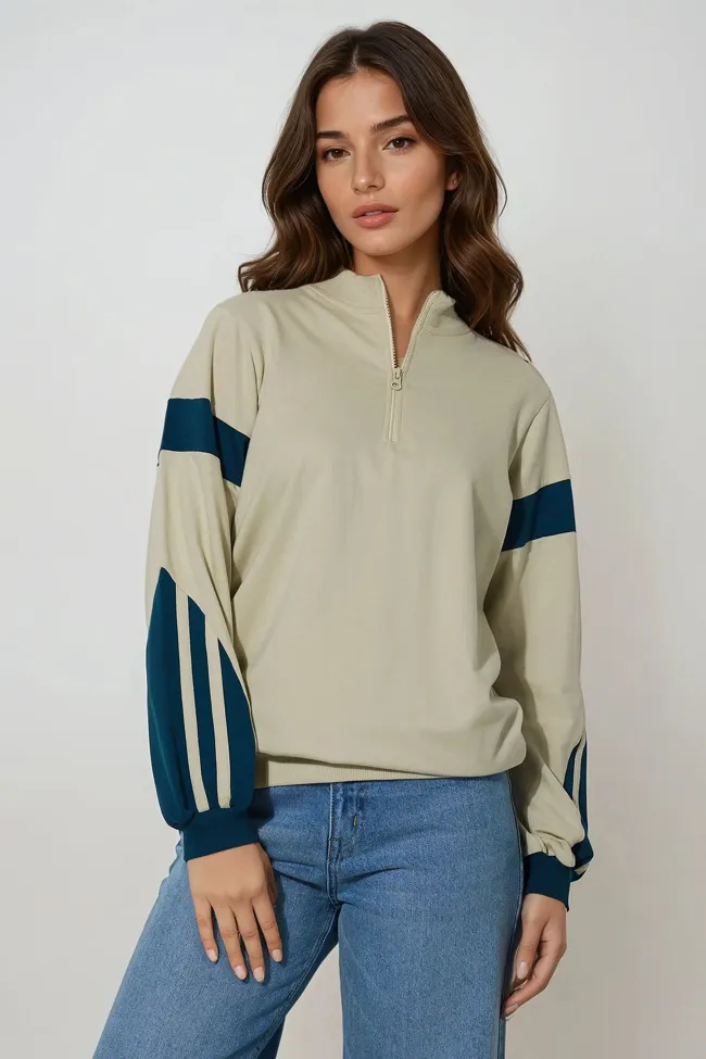 Cream Oversized Sleeve Detailed Sweatshirt