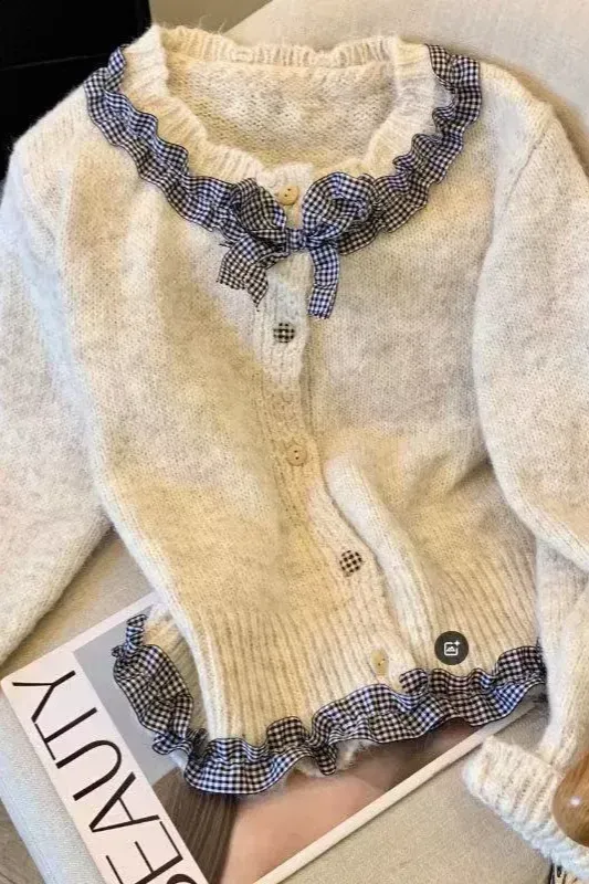 Cream Ruffled Button Down Cardigan