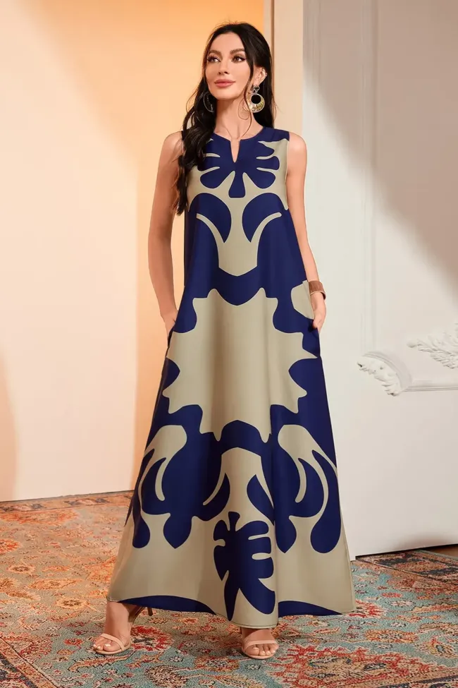 Dark Blue Abstract Maxi Dress
