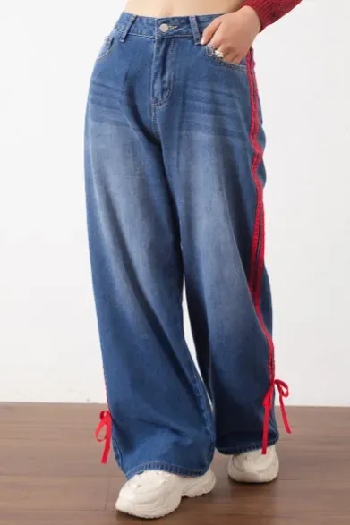 Dark Blue Mid-Rise Wide Leg Jeans