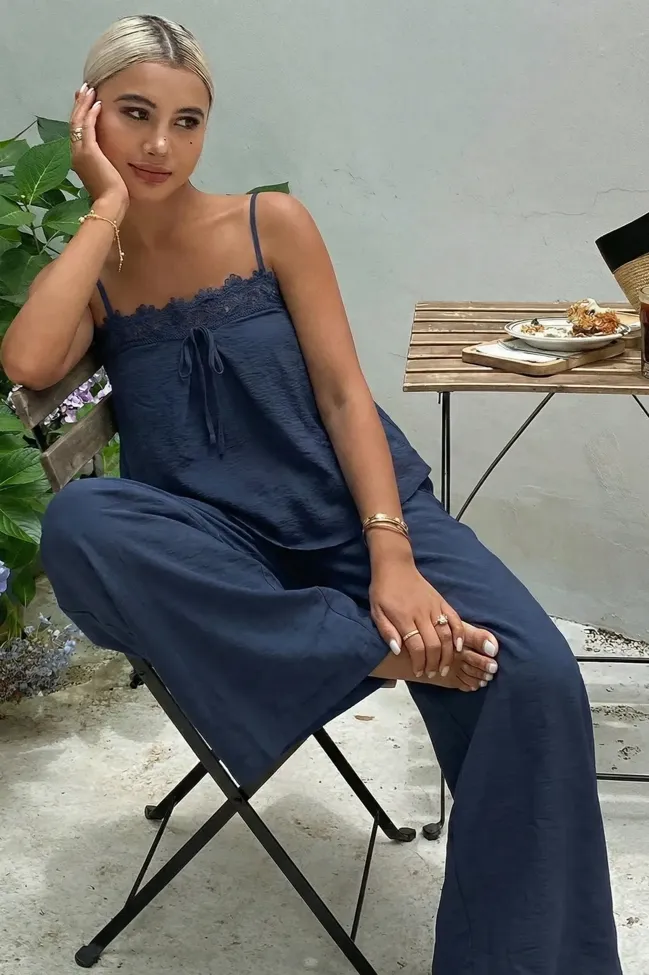 Dark Blue Solid Lace Co-Ord Set