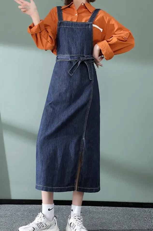 Dark Blue Square Neck Denim Dress