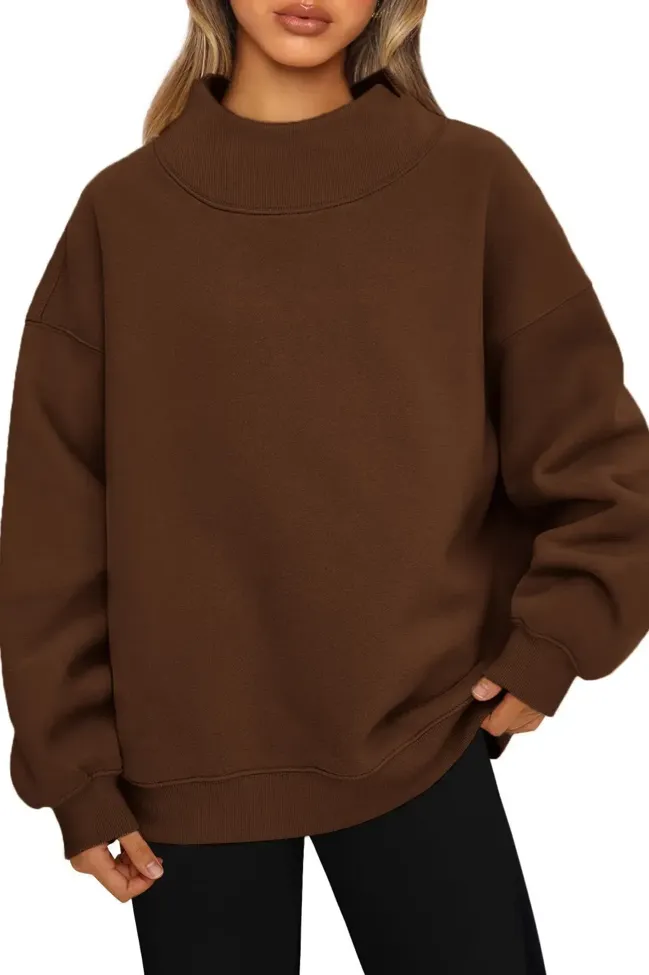 Dark Brown Mock Neck Sweatshirt