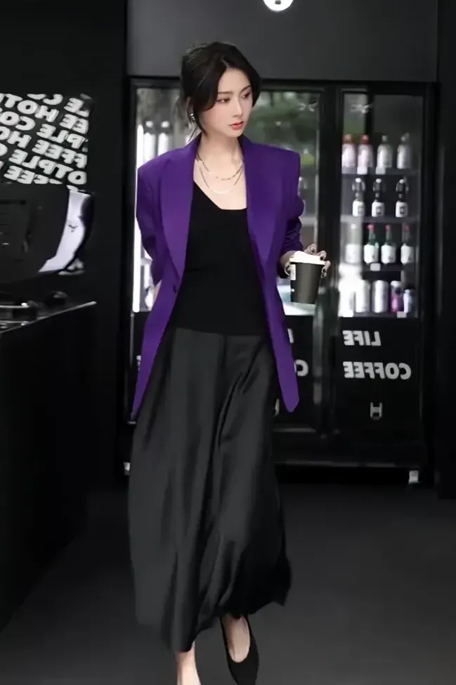 Dark Purple Lapel Collar Blazer