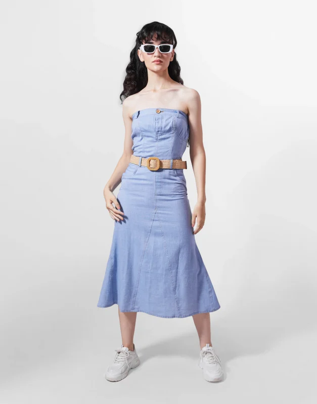 Denim Exposed Shoulder Dress