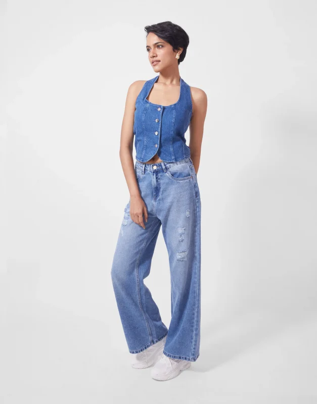 Distressed Wide Leg Jeans