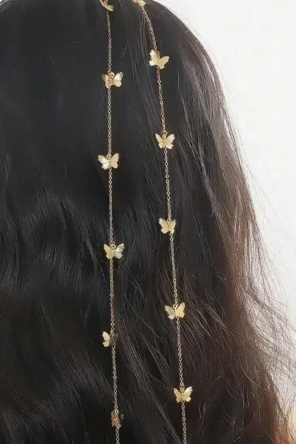 Golden Butterfly Set Of 2 Hair Chains