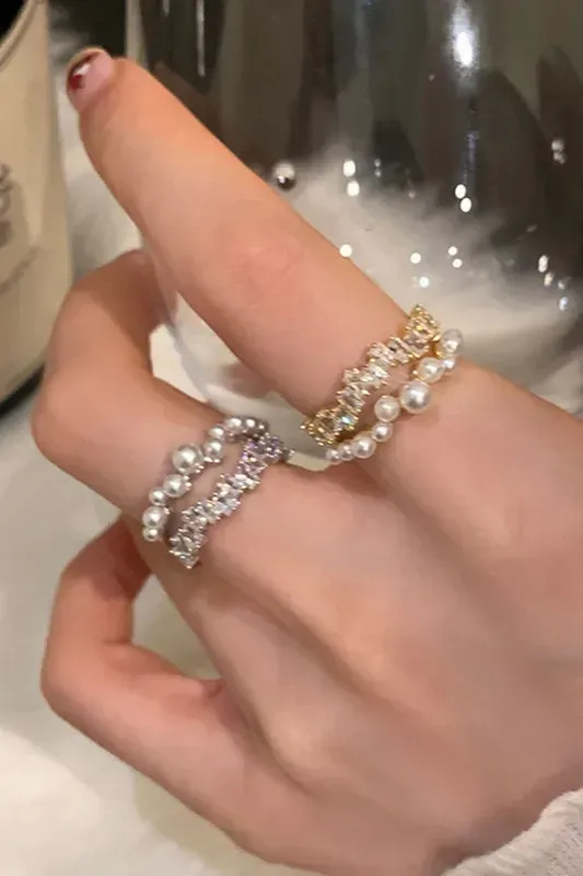 Golden Pearl Set Of 2 Rings