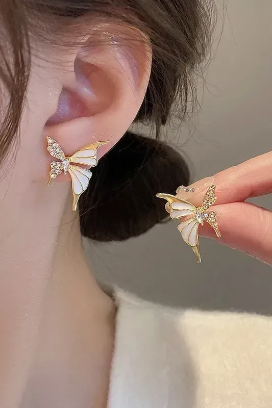 Golden Rhinestone Butterfly Earrings
