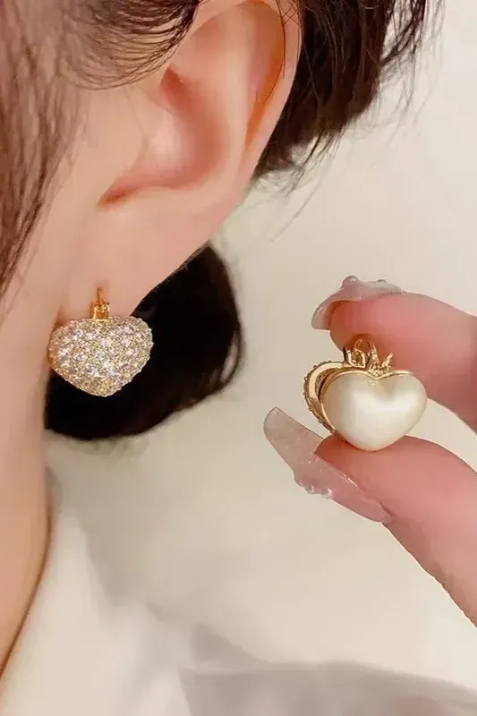 Golden Rhinestone Heart Earrings