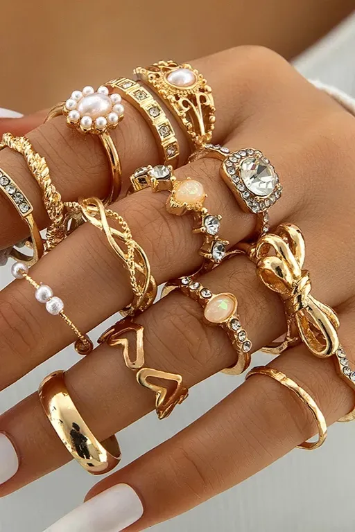 Golden Set Of 15 Statement Rings