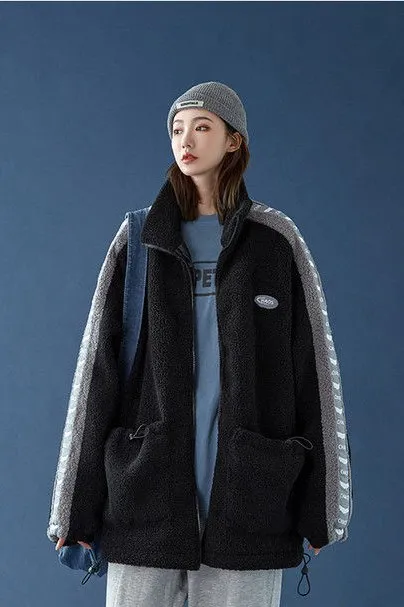 Letter Patchwork Contrast Seam Jacket