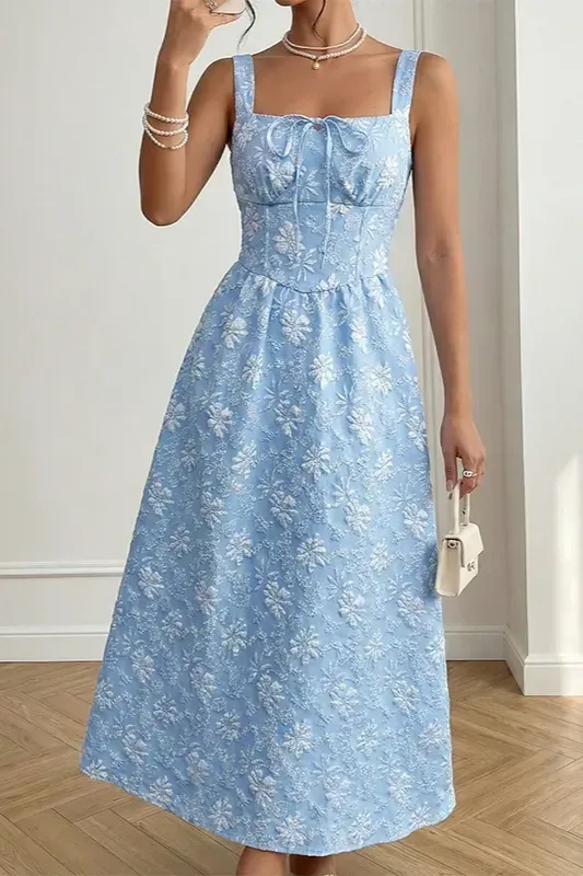 Light Blue Embroidered Midi Dress