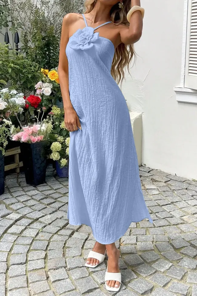 Light Blue Halter Neck Midi Dress