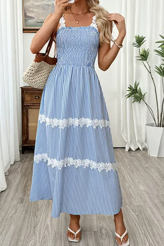 Light Blue Lace Tiered Maxi Dress