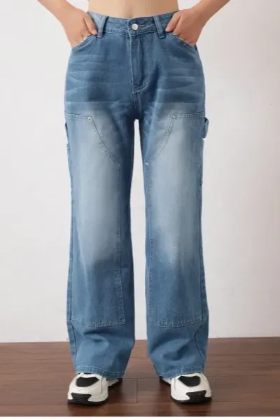 Light Blue Mid-Rise Cargo Jeans