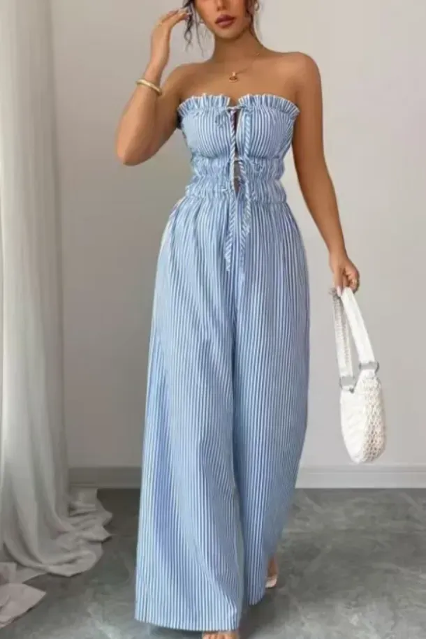 Light Blue Striped Tube Jumpsuit