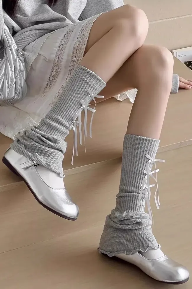 Light Grey Bow Leg Warmers