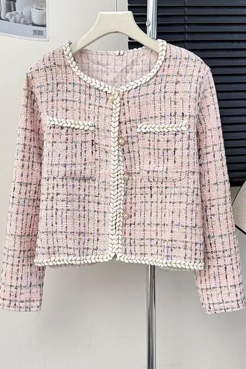 Light Pink Checked Tweed Jacket