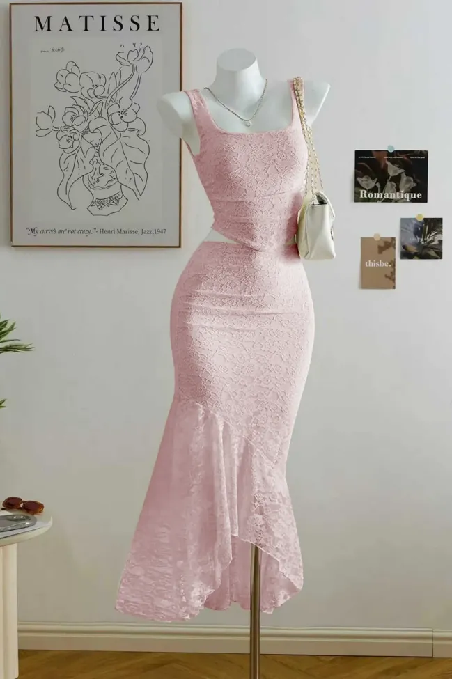 Light Pink Lace Bodycon Co-Ord Set