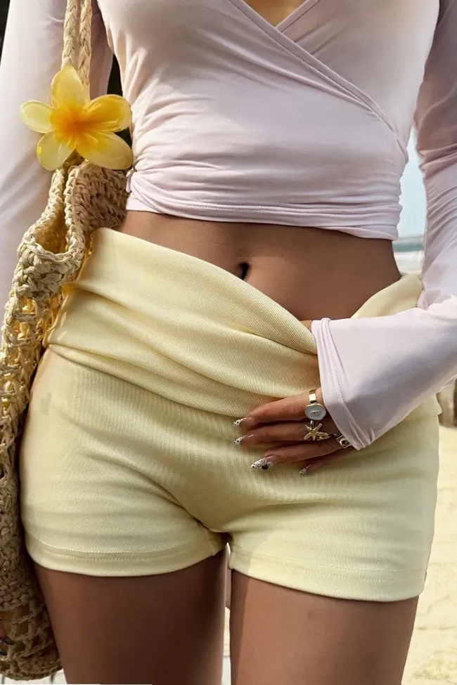 Light Yellow Mid Rise Shorts