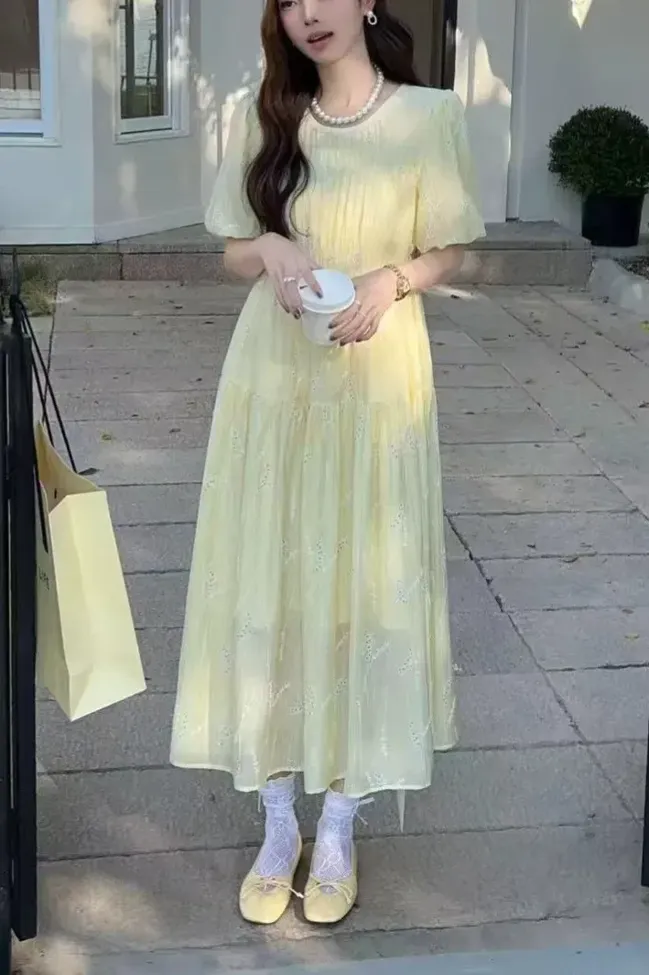 Light Yellow Solid Midi Dress