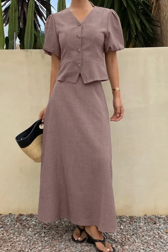 Mauve V-Neck Maxi Co-Ord Set